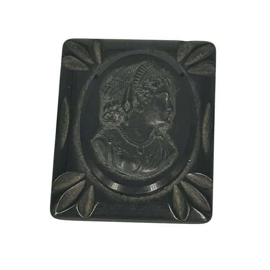 Large Antique Victorian Gutta Percha Mourning Cameo Brooch Pin — Memento Mori