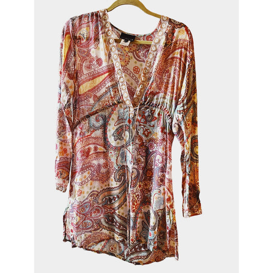 CAbi Size Small Yellow and Dark Blue Floral Tank top