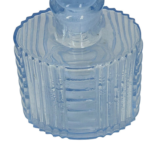 Art Deco Czech Glass Blue Ribbed Perfume Bottle with Stopper