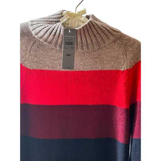 Ann Taylor Wool Blend Size Medium, Petite Stripe Blocked Sweater