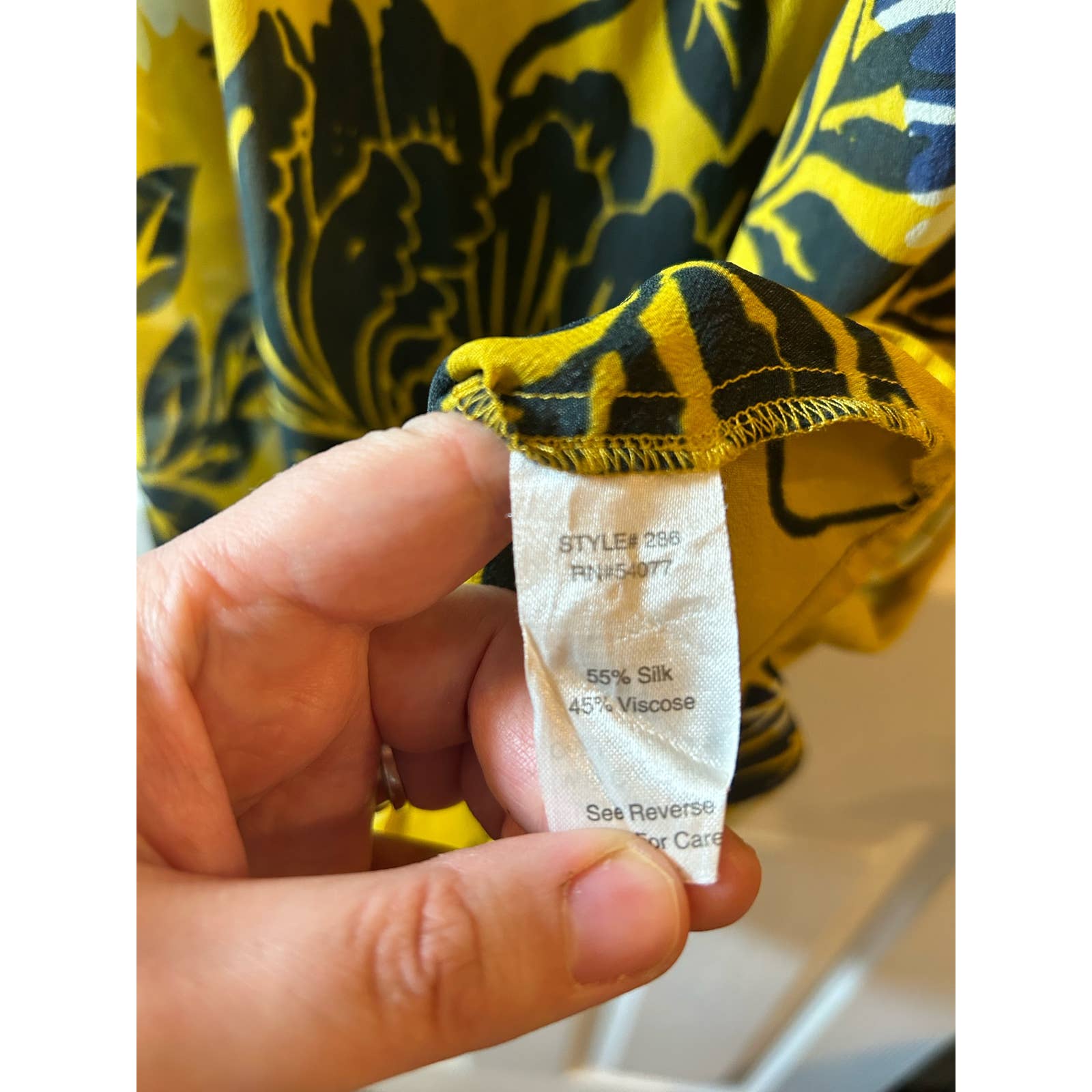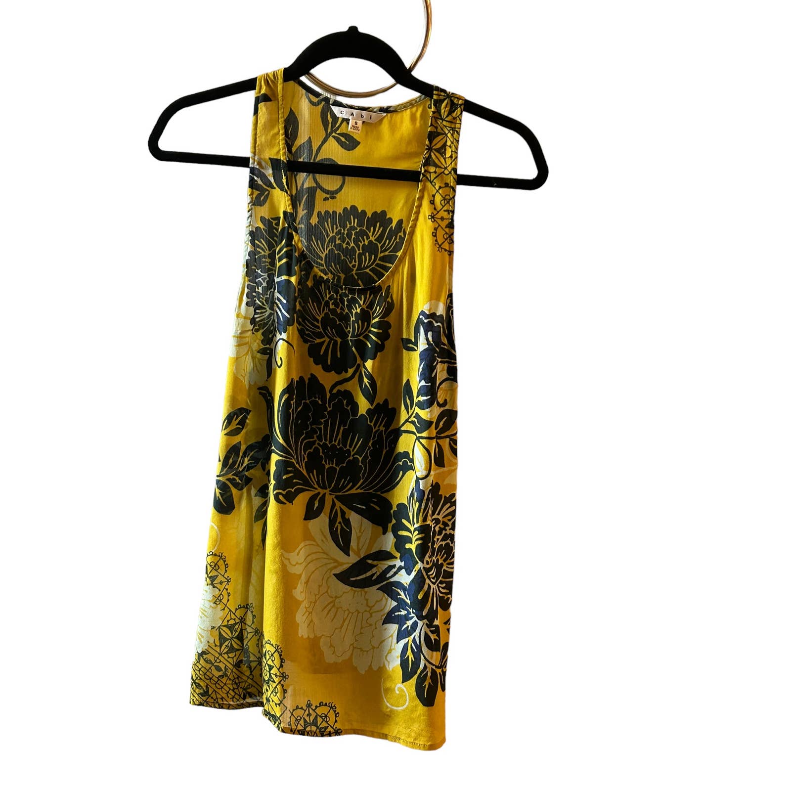 CAbi Size Small Yellow and Dark Blue Floral Tank top